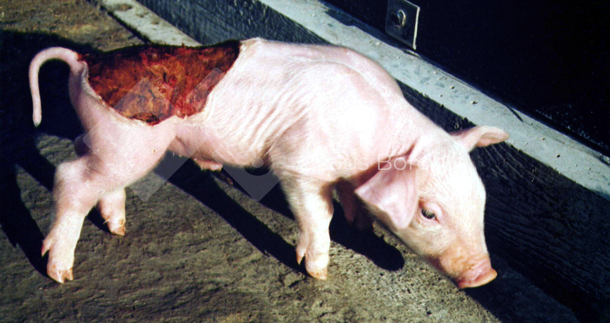 Za brak okolicy skóry na części pleców, bioder i ud odpowiada epitheliogenesis imperfecta. Jest to stan, w którym prosię rodzi się pozbawione pewnego obszaru skóry. Występuje zwykle na kończynach lub bokach i zwykle dotyczy pojedynczego zwierzęcia (a nie miotu).