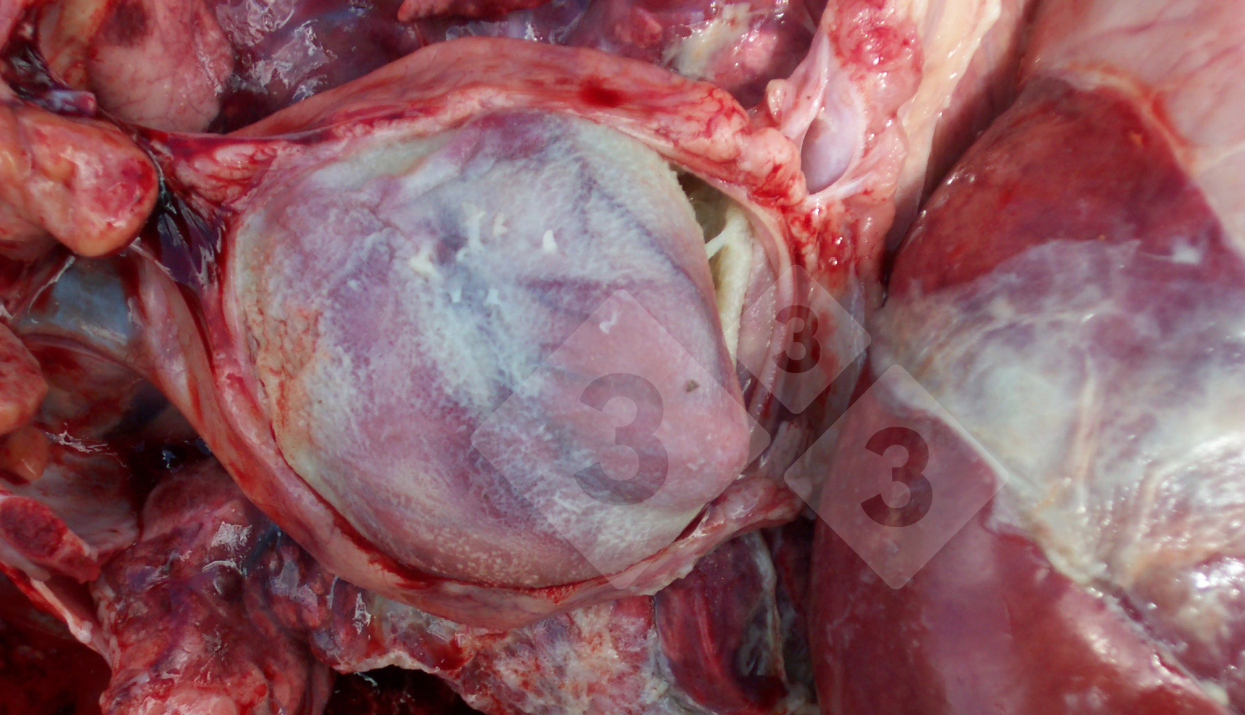 Wyniki sekcji wskazują na zapalenie osierdzia i rozsiane zapalenie błon surowiczych powodowane przez Haemophilus parasuis. Ta często występująca patologia jest znana jako choroba Glassera. W kojcach szpitalnych można wówczas znaleźć sztuki charłacze i chore, bez wyraźnych objawów, typu kaszel czy biegunka. Podczas sekcji można zauważyć blade, nieregularne zgrubienia, które także mogą pokrywać wzdłuż błonę surowiczą płuc, serca i narządy jamy brzusznej. U ciężko chorych zwierząt może być dużo takich żółto- zielonych zgrubień,co może przypominać dwie kromki chleba sklejone warstwą masła. Jeśli chodzi o diagnostykę, bakteriologia (posiew) może być trudna do wykonania na świeżych próbkach. Prosięta urodzone w stadach o stabilnym statusie H. parasuis z reguły zakażają się od matki w ciągu kilku dni od narodzin, rozwija się u nich postać subkliniczna, a następnie osiągają odporność. Jednak jeśli prosięta zostaną zmieszane z grupą zwierząt zakażoną innym szczepem H. parasuis, może się u nich rozwinąć choroba Glassera na skutek braku odporności. Podstawowym sposobem kontroli i radzenia sobie z chorobą jest antybiotykoterapia w paszy. Taka forma kontroli ma tę zaletę, że nie wymaga wiedzy na temat aktualnego statusu przeciwciał matczynych i szczepu dominującego na danej fermie. Innymi przyczynami włóknikowego zapalenia osierdzia mogą być Streptococcus suis, Mycoplasma hyopneumoniae, Mycoplasma hyorhinis.