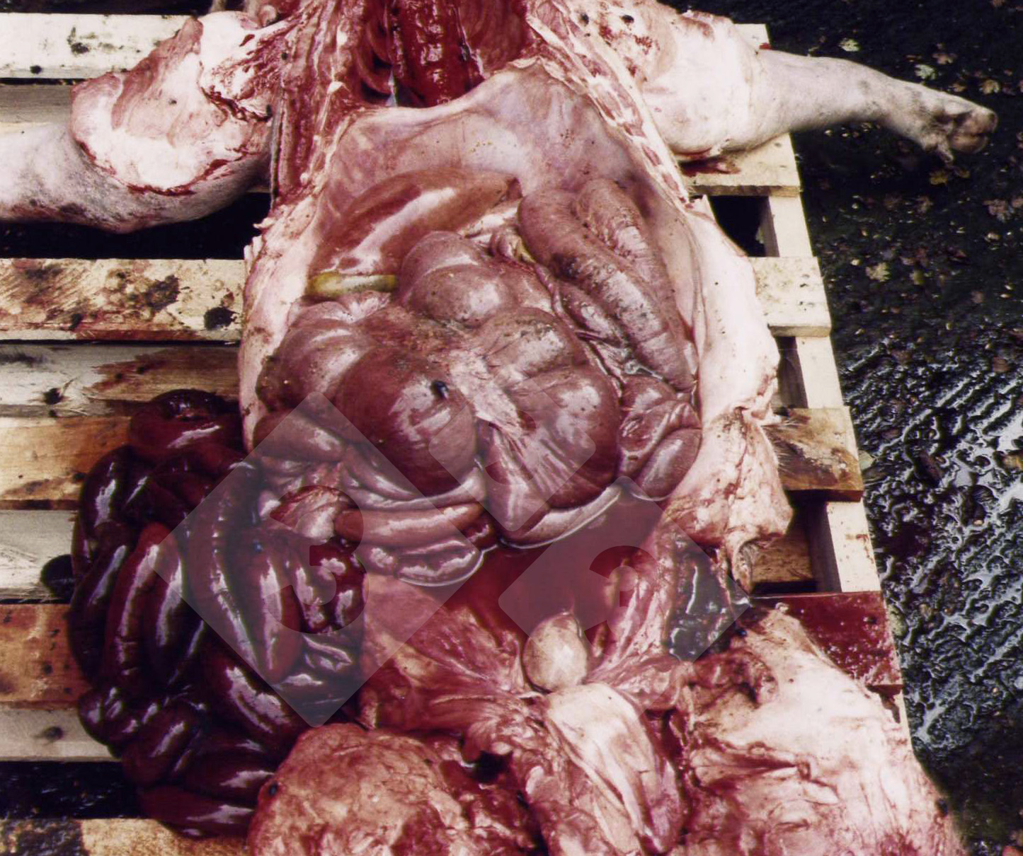 Przyczyną śmierci tej świni był skręt jelit. Zwykle są to sporadyczne przypadki. Śmiertelność u prosiąt odsadzonych i tuczników powinna zwykle wynosić mniej niż 3%, z czego jedna trzecia może być spowodowana skrętem. Jeśli przekroczy 1% lub więcej, powinny być dokładnie zbadane składniki diety, aby sprawdzić, czy są obecne te na bazie skrobi, które mogą powodować nadmierną fermentację w jelitach. W takich przypadkach dodanie antybiotyku i / lub zwiększenie poziomu włókna w diecie zmniejszy namnażanie bakterii, które wytwarza gaz jelitowy i w konsekwencji mogą prowadzić do skrętu jelit.