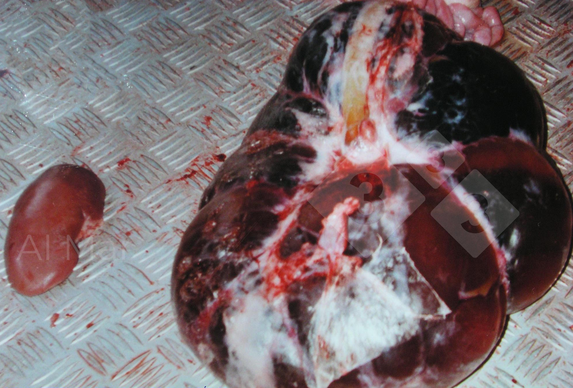 W tym przypadku uszkodzenie jest jednostronne i narząd objęty zmianą w porównaniu do normalnej nerki jest znacznie większy.