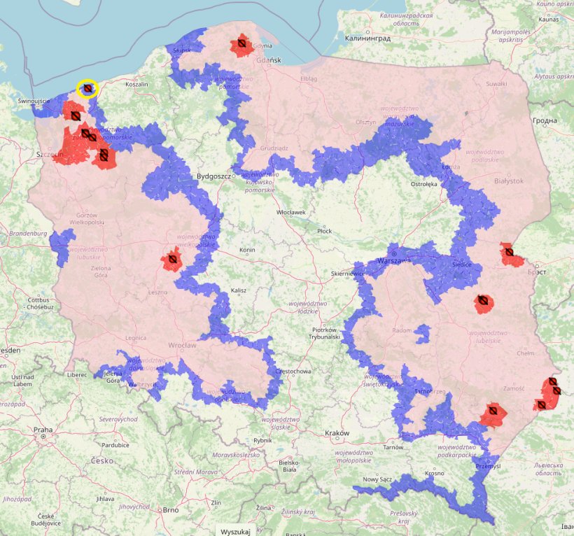 Świnia była hodowana w gospodarstwie położonym w miejscowości Trzebiatów, w gminie Trzebiatów, powiat gryficki, województwo zachodniopomorskie, na obszarze objętym ograniczeniami wymienionym w części I załącznika I do rozporządzenia wykonawczego (UE) 2023/594.
